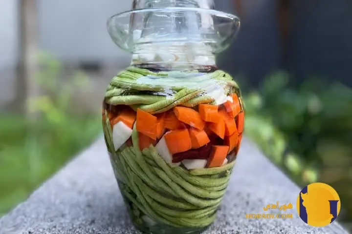 دستور مرحله ای ترشی لوبیا سبز و هویج با طعم اصیل