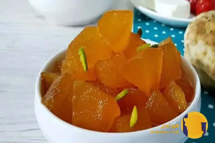 اگر می خواهید مربا رنگی تر شود می توانید چند قطره زعفران دم کرده به آن اضافه کنید.