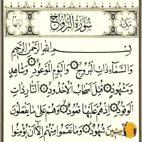 سوره البروج کامل | سوره البروج | سوره بروج با متن | سوره بروج با صوت | سوره شماره 85 قران