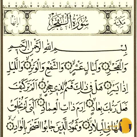 سوره الفجر کامل | سوره الفجر | سوره فجر با متن | سوره فجر با صوت | سوره شماره 89 قران
