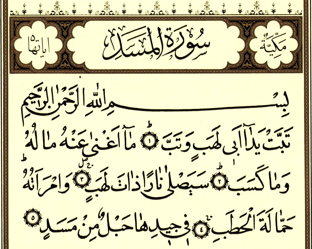 سوره مسد(لهب) با ترجمه فارسی + متن کامل و صوت